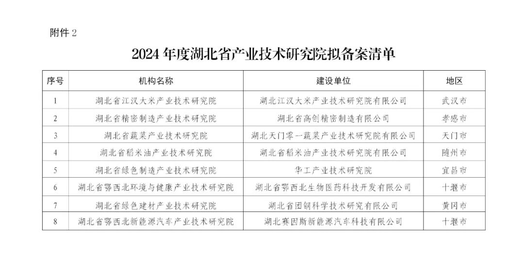 根据《湖北省新型研发机构备案管理实施方案》《湖北省科技计划项目管理办法》等文件要求,现将2024年度湖北省产业技术创新联合体和产业技术研究院拟备案清单予以公示。