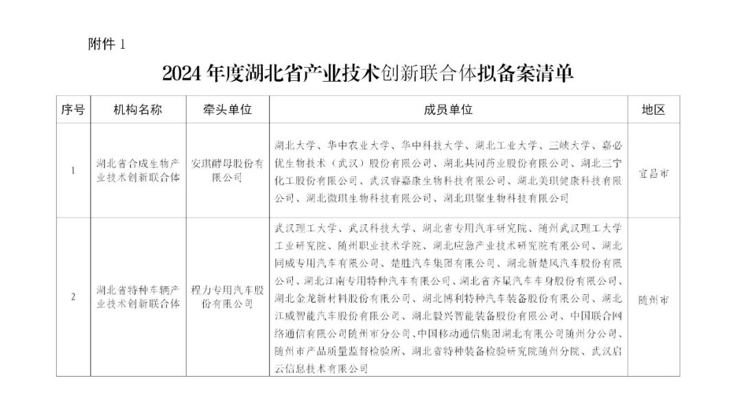 附件:1.2024年度湖北省产业技术创新联合体拟备案清单